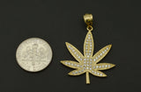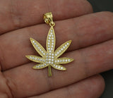 10K Solid Gold Created Diamond 7 Cannabis Leaf Marijuana Pendant 3.1gr