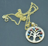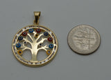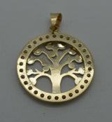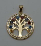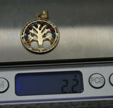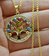 14K Solid Gold Round Evil Eye Tree Of Life Charm Pendant 2.2g +18" Chain