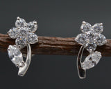 14K Solid White Gold 12mm White Flower Cubic Zirconia CZ Stud Earrings