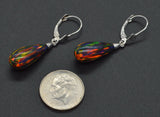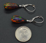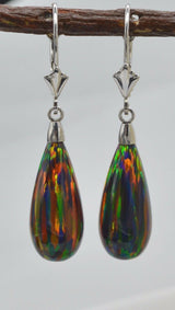 14K Solid White Gold Tear Drop Black Fire Opal Lever back Dangle Earrings