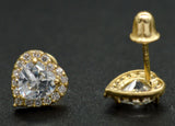 14k Solid Yellow Gold 1.50ct Round and Heart Created Diamond Stud Earrings