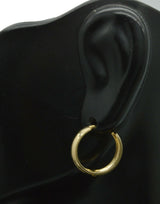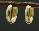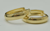 14K Solid Yellow Gold 15mm x 3mm Plain Huggie Hoop Earrings