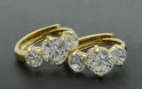 14K Solid Yellow Gold 3-Stone 2.00ct Round Created Diamond Huggie Earrings 12mm
