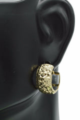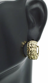14K Solid Yellow Gold 7 mm Wide Faceted Huggie Hoop Earrings 2.9gr