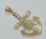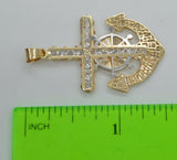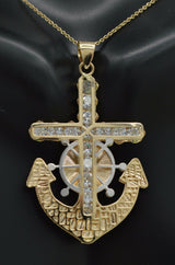 14k Solid Yellow Gold Anchor cross Religious cz Pendant +18 Chain
