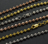 14k Solid Yellow White Rose Gold 2.5mm Half Moon Diamond Cut Ball Chain-18" 24"
