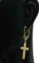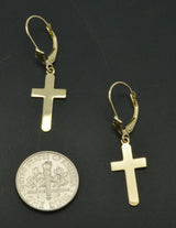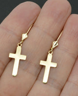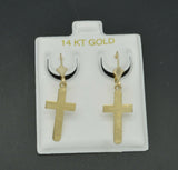 14k White or Yellow Solid Gold Dangle Cross Charm Leverback Earrings