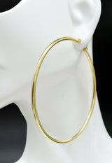 In a Plain design, these l2 1/2'' 14k Solid Gold big Large hoop Plain Earrings 65mm x2mm 4.6 gr catch the light as you move, bringing a flash of gold with a big, bold look. Imagine how they will gleam in the candlelight over dinner or shine in the sunlight at a summertime soiree. The hanging length is 2". Post, 14kt yellow gold hoop earrings.