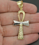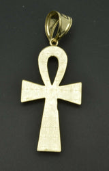 2" big Real 10K Yellow Gold Huge Ankh Cross Jesus Diamond Cut Pendant Charm 4g