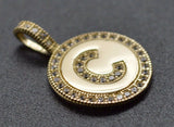 Round Cut Initial Letter C Lab Diamond Pendant 14K Yellow Gold .25ct  Medal Charm