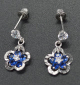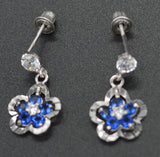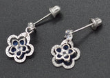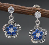 JM013 14K Solid White Gold 10mm Flower Blue Cubic Zirconia(CZ) Drop Earrings