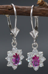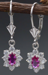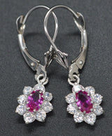JM11 14K Solid White Gold 12mm Flower Pink Cubic Zirconia(CZ) LeverBack Earrings