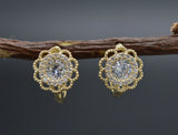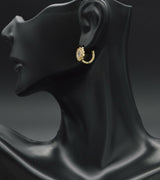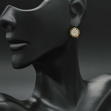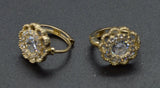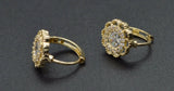 JM127 2.5ct Created Diamond Flower Halo Huggie 14K Solid Yellow Gold Earrings