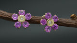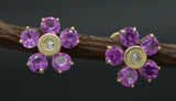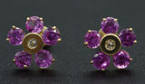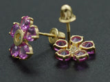 JM26 14K Solid Yellow Gold 9mm Flower Pink Cubic Zirconia CZ Stud Earrings