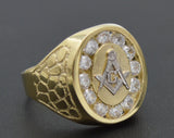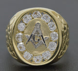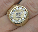Real 10K Solid Yellow Gold 19mm CZ Master Freemason Masonic Ring 7.0gr ALL Sizes