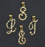Real 10K Solid Yellow Gold 24mm Cursive Initial Alphabet Letter Pendant A-Z 0.9gr