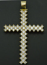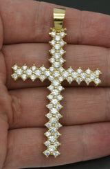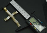 Real 10K Solid Yellow Gold Created Diamond Cross Pendant 2.6 in" 11.9g