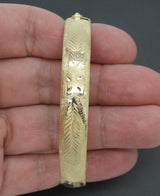 Real 10K Solid Yellow Gold flower & leaf Shiny Bangle Bracelet 10mm 7"- 8"