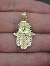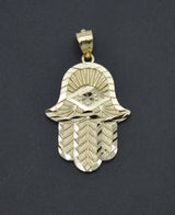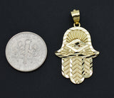 Real 10K Solid Yellow Gold Shiny Hamsa Hand Lucky Jewish Filigree Pendant 2.1gr