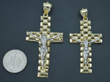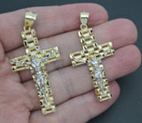 Real 10K Solid Yellow Gold Shiny Rlx Railroad Cross Crucifix Jesus Body Pendant