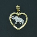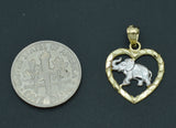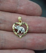 Real 10K Solid Yellow Gold Shiny Elephant Inside the Heart Pendant