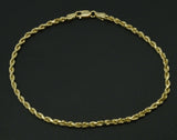 Real 10K Yellow Gold 2.5MM Rope Link Bracelet Length 71/2" - 8"