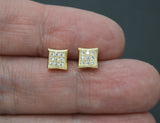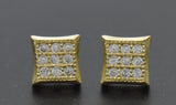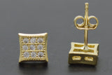 Real 10K Yellow Gold 6.2mm Concave Square Pavé CZ Stud Earrings 1.7gr Men-Women