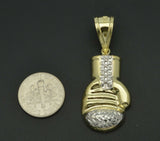 Real 10k Yellow Gold Diamond Cut 3D Boxing Glove Pendant 1.8in" 3.3gr