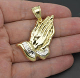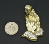 Real 10k Yellow Gold Diamond Cut Praying Hands Pendant 1.85'' 4.7gr