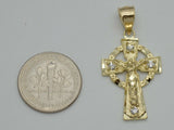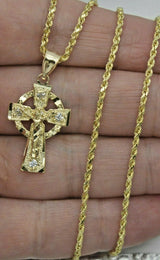Real 10k Yellow Gold Irish Celtic Jesus Crucifix Cross Pendant + Chain 16''-24''