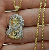 Real 10K Yellow Gold Jesus Head Diamond Cut Pendant + Chain 16"-24"
