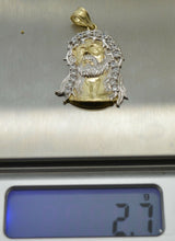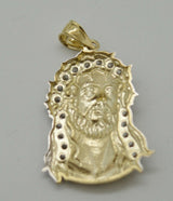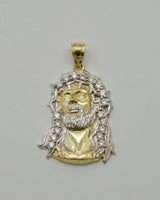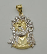 Real 10K Yellow Gold Jesus Head Diamond Cut Pendant + Chain