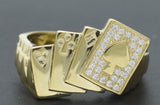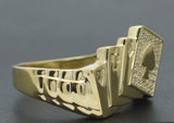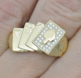 Real 10K Yellow Solid Gold Playing Cards Ace of Spades Poker Men Ring All Sizes