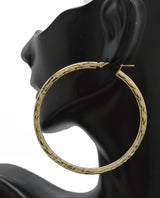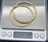 Real 10k Yellow Solid Gold Diamond Cut Shiny Big Large Hoop Earrings 55mm 3.6 gr
