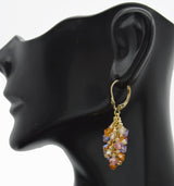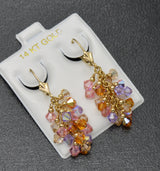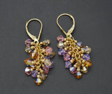 Real 14k Solid Gold Leverback Made/w Multicolor Swarovski Crystal Grape Earrings