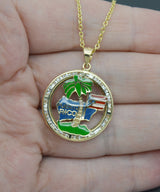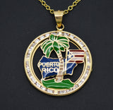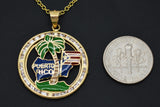 Real 14k Gold Cz Puerto Rico Pendant enamel finish Charm Pendant +18 Chain 25mm