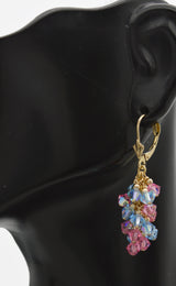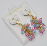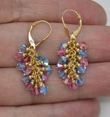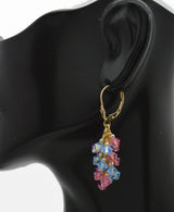 Real 14k Solid Gold Leverback Made/w Multicolor Swarovski Crystal Grape Earrings