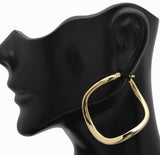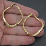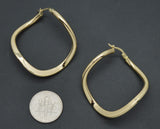 Real 14K Solid Yellow Gold 40.2mm Twisted Square Cut Shape Hoop Earrings 3.4gr