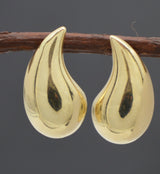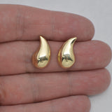 Real 14K Solid Yellow Gold Shiny Waterdrop Hollow Stud Earrings 2.6gr