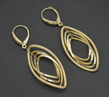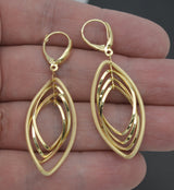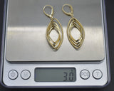 Real 14K Solid Yellow Gold Four Link Twisted Diamond Shape Dangle Earrings 3.0gr