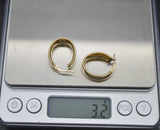 Real 14K Solid Yellow Gold Shiny Charm Round Hoop Clip Post Earrings 3.2gr