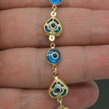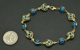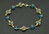 REAL 14K Yellow Solid Gold 71/2" Heart blue Color Evil Eye Bracelet 6.2gr