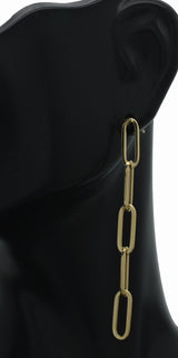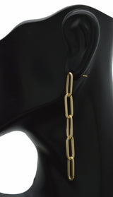 Real 14K Yellow Gold Paperclip Shiny Long Drop Dangle 4mm 2.20'' Earrings