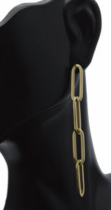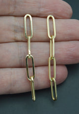 Real 14K Yellow Gold Shiny Long Paperclip 5.7mm Drop Dangle 2.40'' Earrings