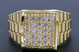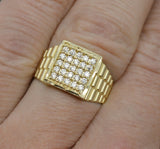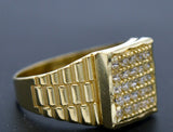 Real Solid 10K Yellow Gold Men's Pinky Railroad Square Ring CZ 12mm ALL Sizes