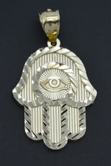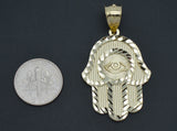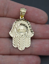 Real Solid 10K Yellow Gold Shiny Hamsa Evil Eye Charm Pendant 3.8gr